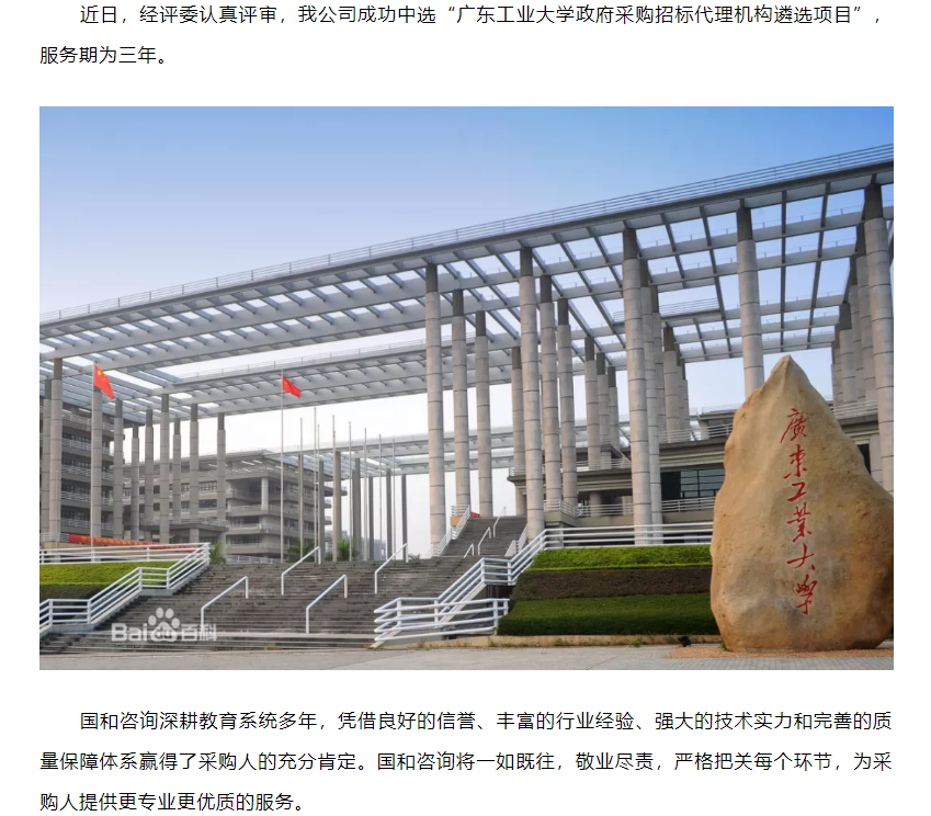 我公司成功中選“廣東工業(yè)大學(xué)政府采購招標(biāo)代理機(jī)構(gòu)遴選項目”
